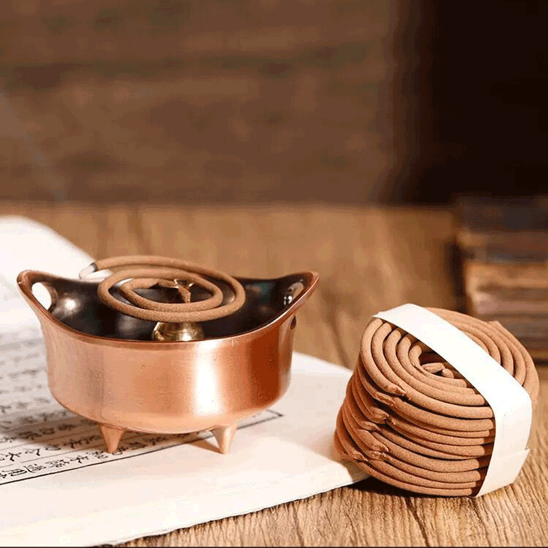 Place a fireproof cotton pad or a layer of incense powder in the incense burner, place the coil incense on top.