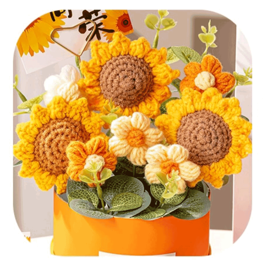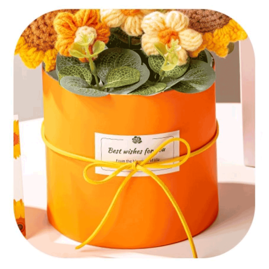 Each flower is meticulously hand-knitted with soft yarn, making it an eco-friendly and unique alternative to traditional floral gifts