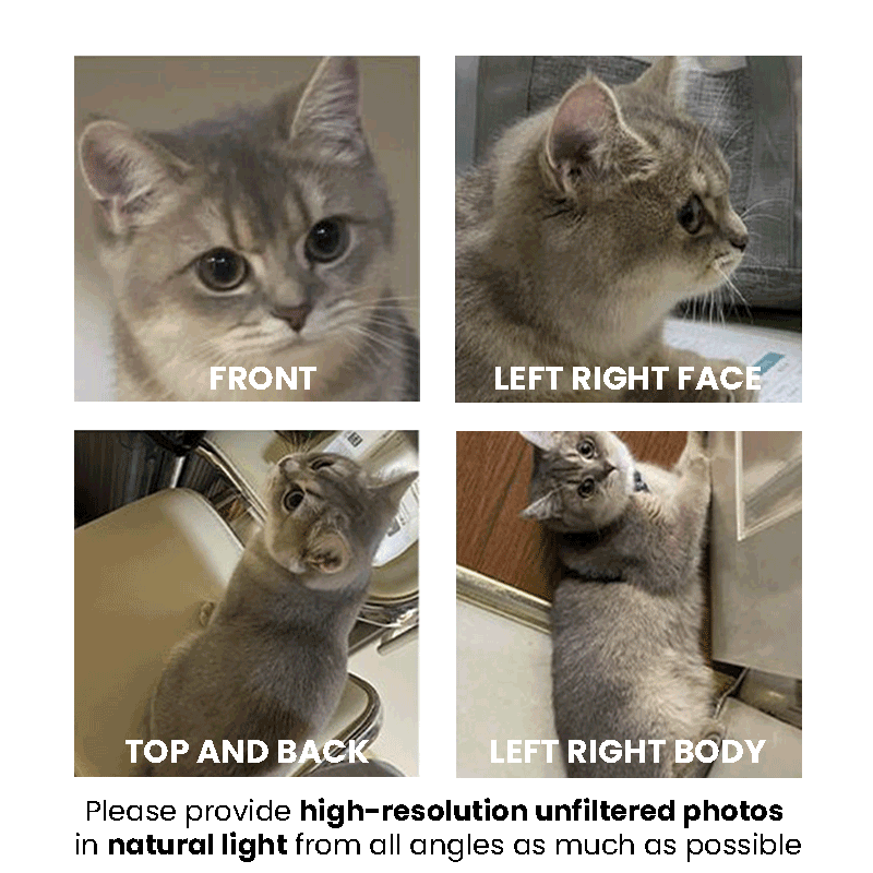 Immortalize your pet in a way that’s as unique as they are. Upload your photos now and let us create a lovely friend for you!