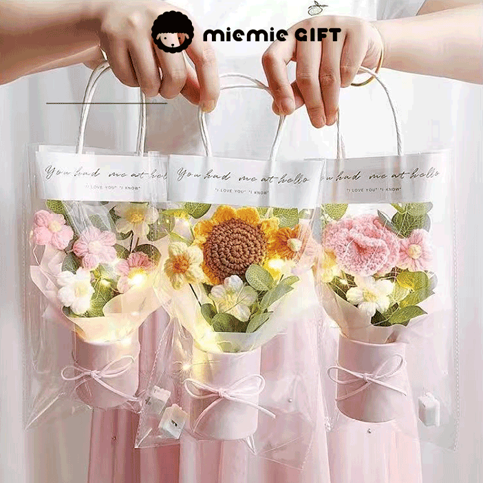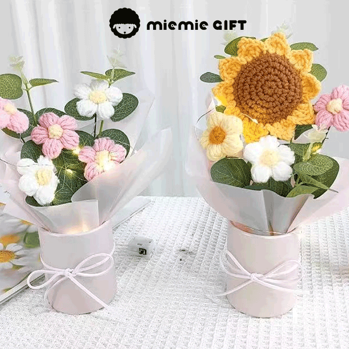 Every flower is hand-crocheted, making each bouquet unique and full of personality