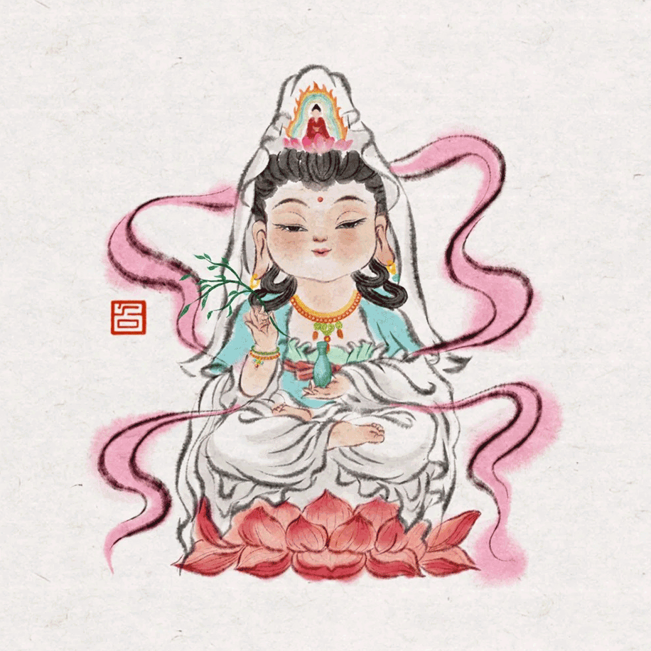 Guanyin is beloved by believers for her great kindness and compassion, rescuing those who suffer.